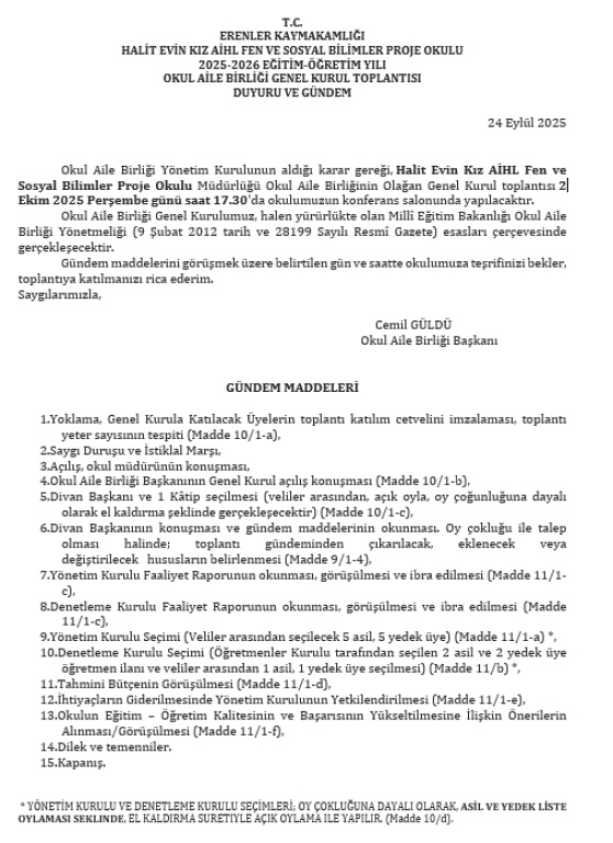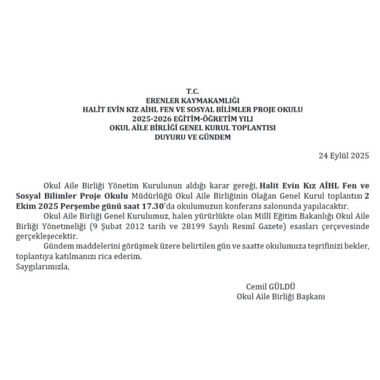 Belirtilen gün ve saatte tüm velilerimizin toplantıya katılımı...